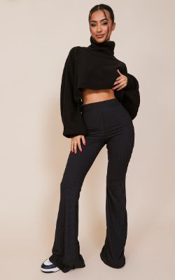 Petite Black Ribbed Flares