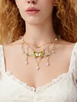 Butterfly & Faux Pearl Decor Layer Necklaces