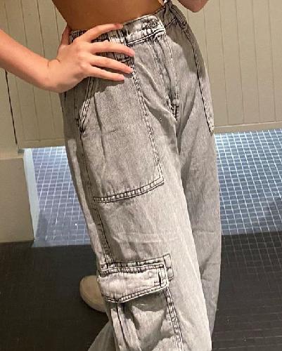These pants are awesome. Love baggy bottoms with crop tops. My new favorite jeans!!