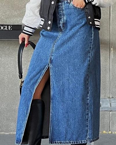 My favorite long denim skirt. This is so cute & the fit is amazing.