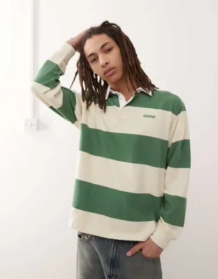 Vans Ward striped rugby top in green and yellow