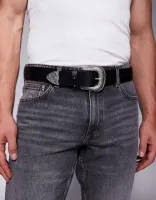 ASOS DESIGN western belt with studding and black crystal detail in black faux leather
