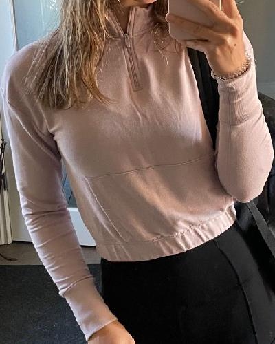 BrookYakThe color of the gym shark pullover is discontinued- however there is a very similar color linked. I would recommend sizing up if you would like a less exaggerated crop look.