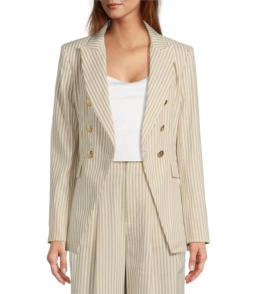Antonio Melani Coordinating Aurora Linen Stripe Notch Lapel Set-In Sleeve Jacket