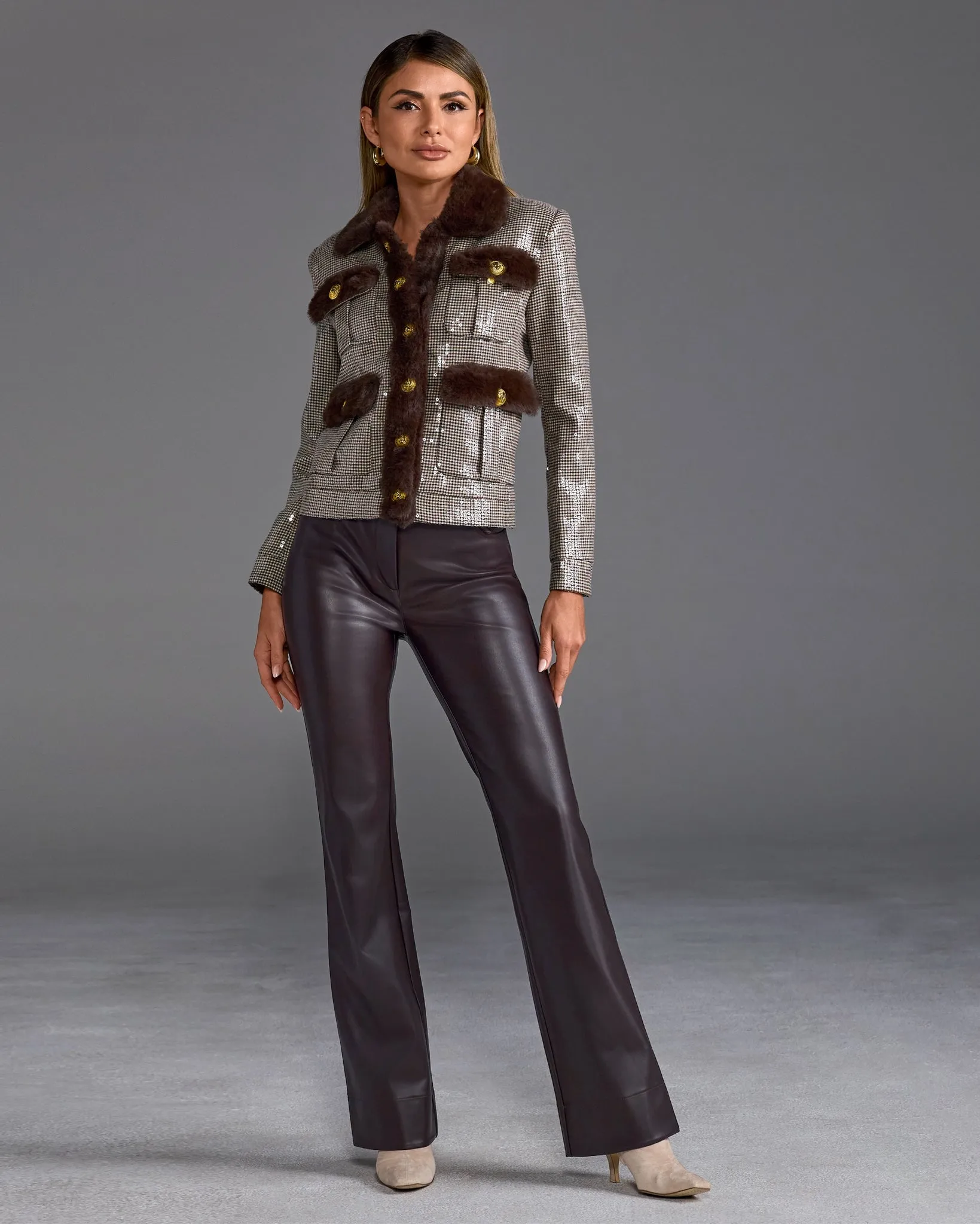 Monterey Faux Leather Five Pocket Bootcut Pant Chocolate
