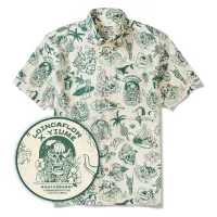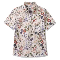 Men's Hawaiian Shirt Short Sleeve Button-down 100% Cotton Beige Aloha Anniversary Gem By Loinda Flow