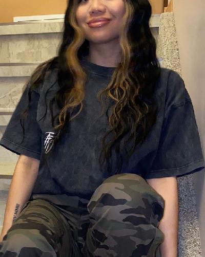 DarleneFor a cool urban outfit, pair an oversized tee with cargo pants. These cargo pants are from Garage and the military print helps elevate the casual look. This is my coveted black washed oversized tee, purchased from a local business. The material is high quality and the shirts can all be custom designed. I am wearing a size medium. Finish the look off with white sneakers and some dirt to add character :P