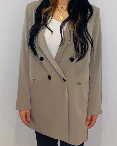 DarleneMy favourite blazer thus far. This was a recent purchase at the local H&M outlet and unfortunately, I can't find the exact one online :( I linked some similar styles in hopes that you can find one that you like. It is their double breasted blazer from their "conscious" line in the size medium. I would definitely say that it is an "oversized" blazer, as it has a straighter silhouette and falls past my mid-thigh (I'm short! ...almost 5"3), as opposed to more fitted/tailored looking blazers. I would describe the colour as a "taupy"-stone with a hint of ivy green. I also didn't notice this before, but after taking a photo with it on, it almost appears slightly reflective, which is pretty rad. It is stunning in person and I can see it being one of my staple pieces! I paired this with a basic white camisole and cropped slim-leg trousers from Artizia's Babaton line.