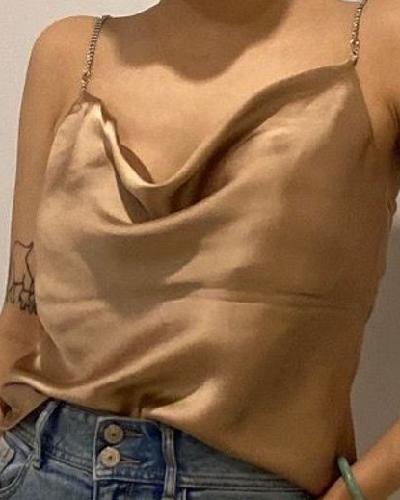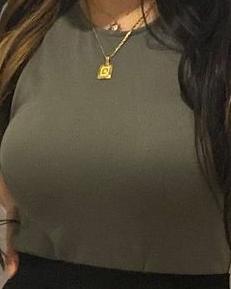 DarleneThis is Dynamite's cowl neck camisole in the colour natural beige. Typically, I'm at the cusp between a size S/M, I'm wearing a small here and I find that it is still a little big. In person, I would describe it as a silky cappucino ;) The adjustable jeweled straps add an extra something and make this silky-soft top perfect for an effortless dressy look! I paired this piece with some blue skinny jeans and heels for an unplanned night out with the girls!