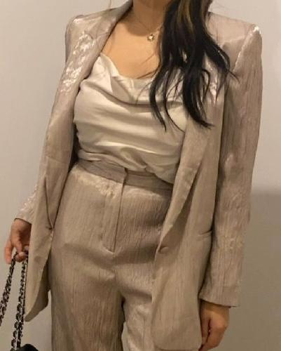 DarleneThat face you make when you realize you really did that (the outfit!) This satin blazer from Zara is the top version of the wide-leg dress pants from my previous post! I usually don't wear sets because I think they can look a little too matchy matchy, but THIS! THIS. THIS. THIS. I really surprised myself and everyone (pleasantly) with this matching holiday set! I am wearing a size small in the blazer and pants and I would say they fit perfectly-this is not an oversized blazer (make sure to check out my measurements). Of course, all these pieces can be worn without their counterpart and can go with various pieces. Since this pattern is more on the 'spectacular' side, it would also pair well with a piece that is more toned down. For example, I would also wear this blazer with some fitted jeans any time of the year!