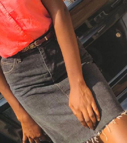 A sleeveless comfortable shirt on a jean skirt for a saturday was just the needed outfit on such a sunny day.