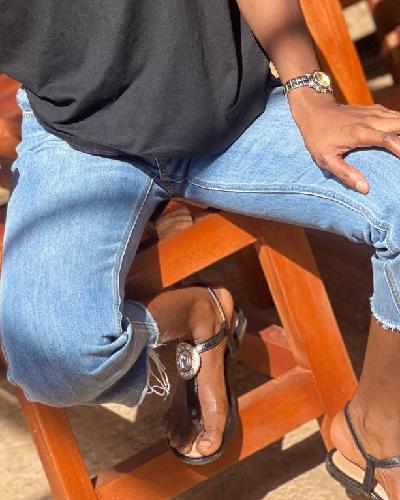 This photo is just a perfect capture of happiness!. The outfit is simple but catchy.
