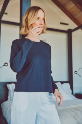 I wear this to Pilates since I don’t like anything too tight or constrictive. I have a sports bra I wear underneath in case I need to take off my long sleeve shirt.