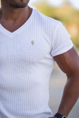 Father Sons Super Slim White / Gold V Neck Ribbed Crew - FSH498