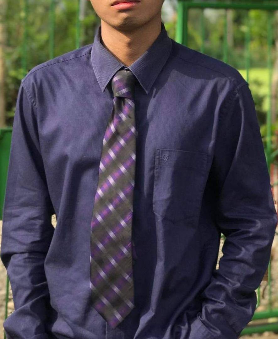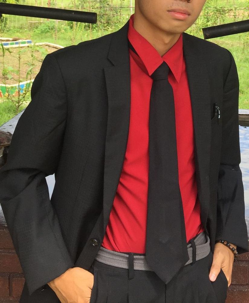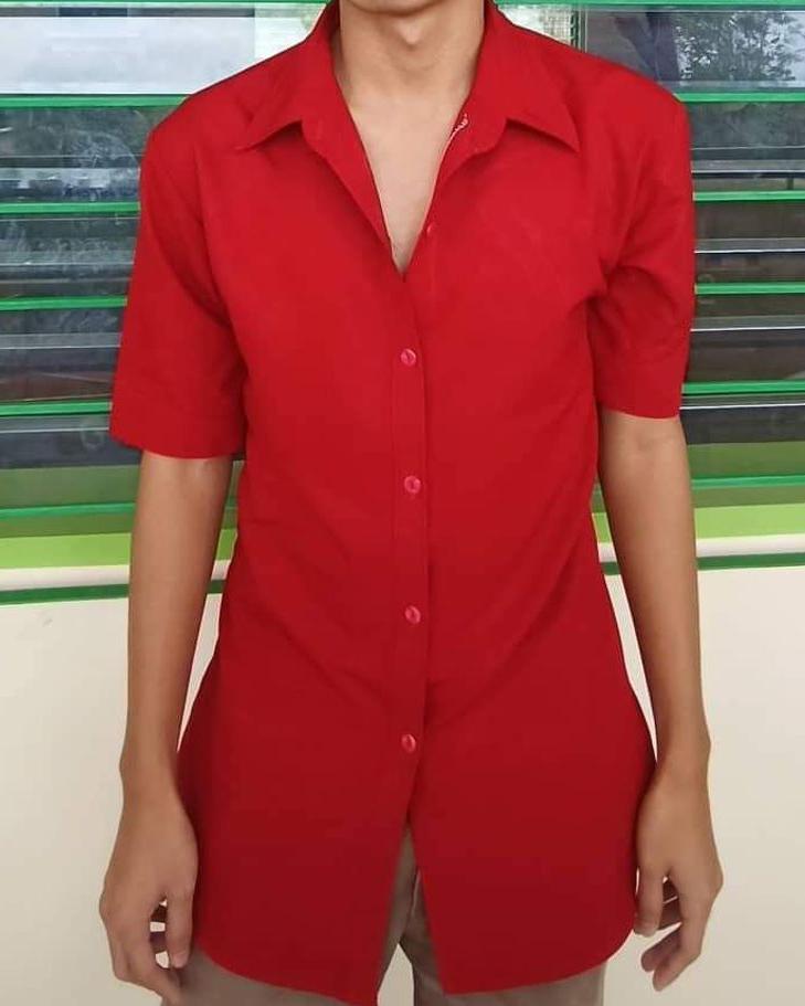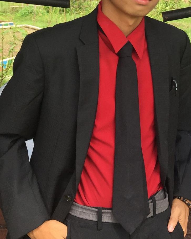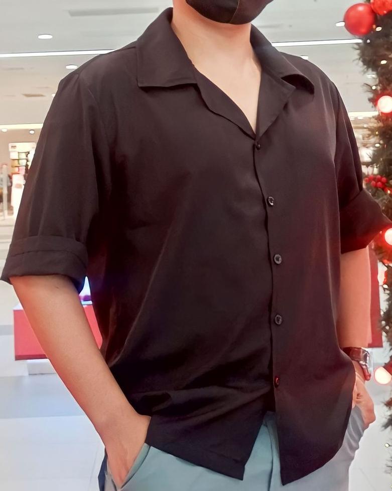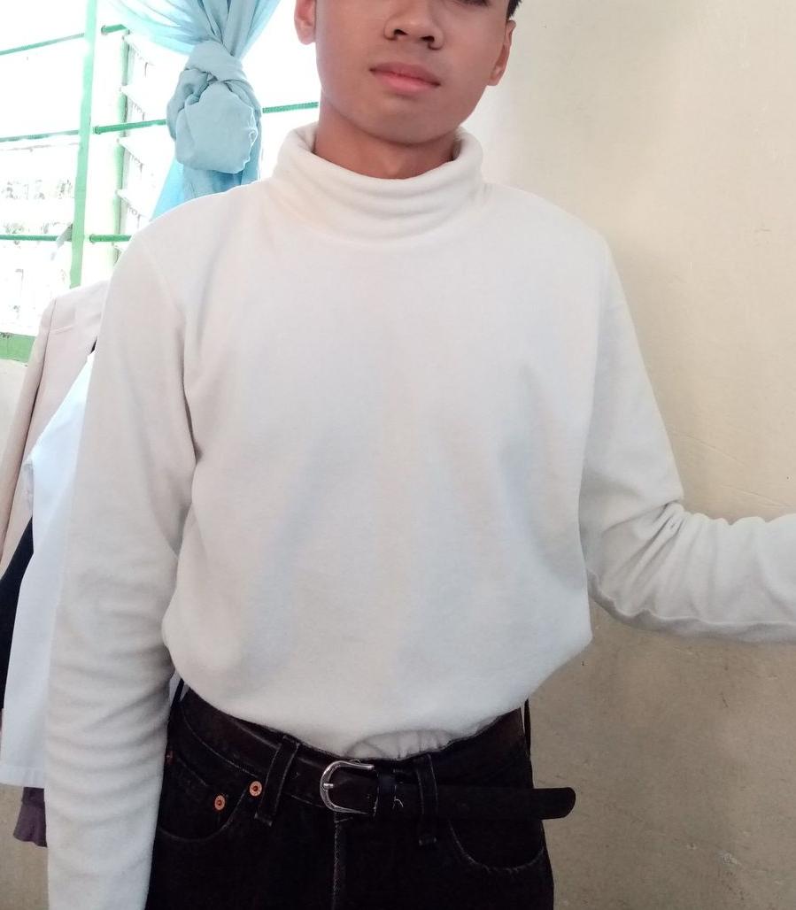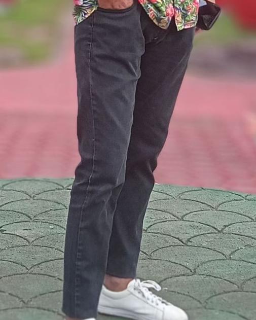 Whole outfit for teens, consisting of floral polo, black jeans, and white low cut shoes.