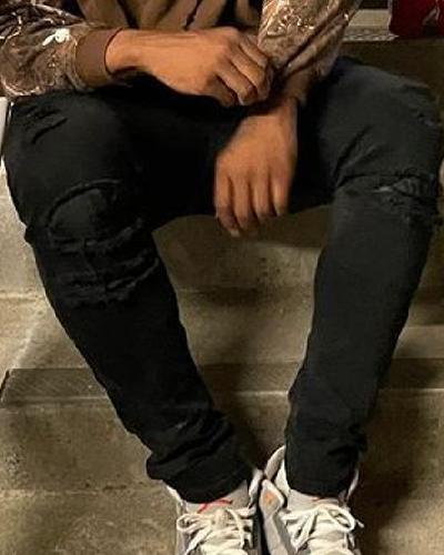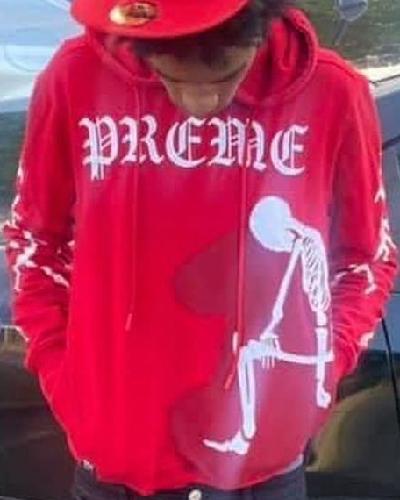 HenrybonnyNew era red baseball cap on a supreme PREME hoodie and a black robin's Jean and a pair of red Jordan sneakers. Reddish day out