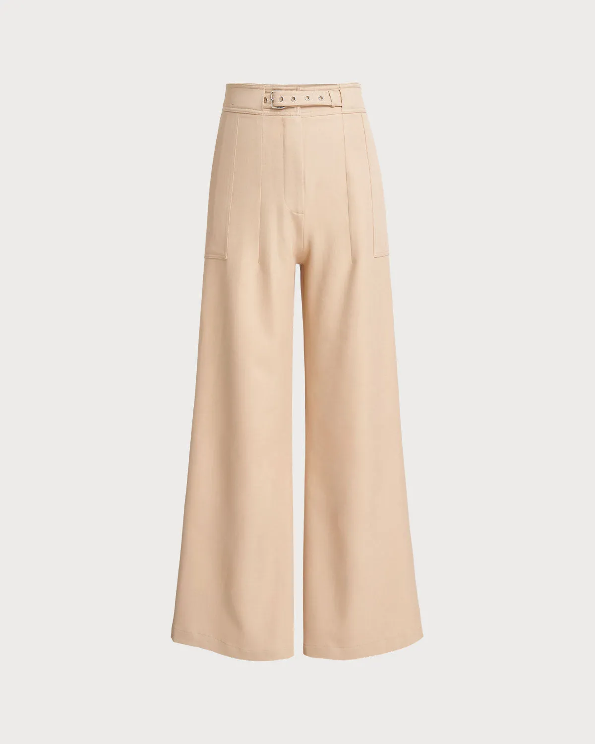 Beige Natural Waisted Straight Pants