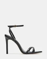 Black PU Croc Detail Point Toe Stiletto Heeled Knee Boots