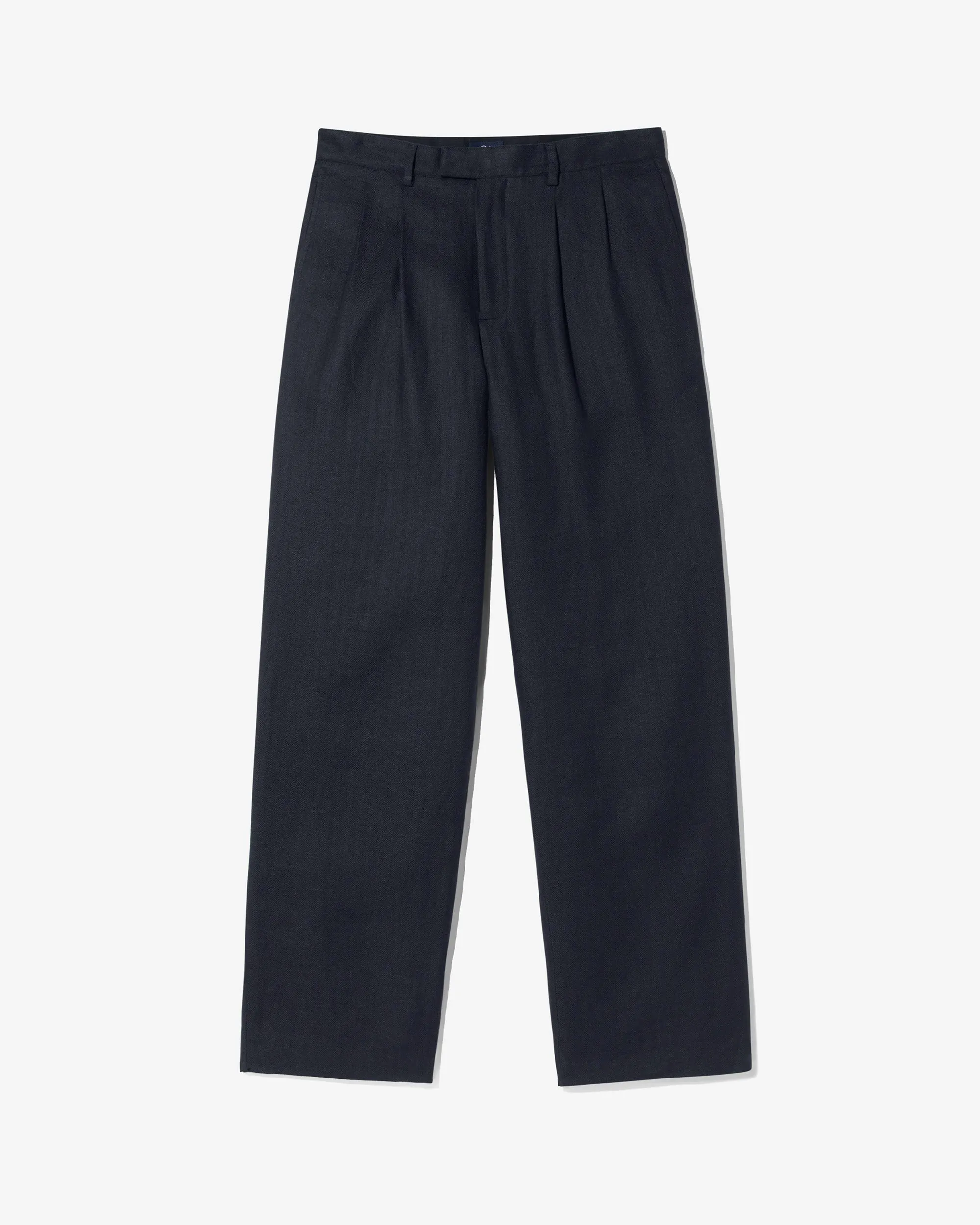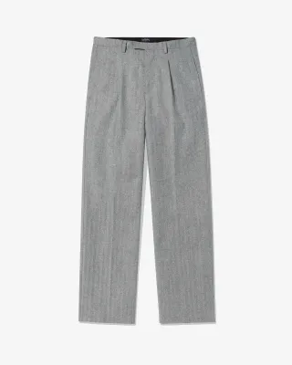 Double-Pleat Herringbone Linen Trousers