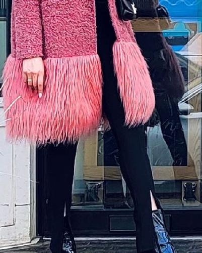 Maryamon Saturdays we wear pink? this flamingo jacket is one of my favorites, purchased it years ago at winners, an Italian design. the bag is Valentino also from a few seasons ago! My friend's jacket is by Wilfred, her bag is Coach and her boots ( incredible ) are Jeffrey Campbell, the scarf is culture hijab, and the dress is banana republic!