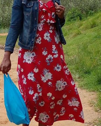 MoiponeVeeFun and cute, this red floral ditsy print dress is so light and breezy for the Summer. Throw on sandals and you're ready to go out.