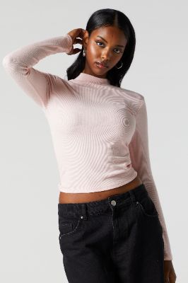 Ribbed Mock Neck Long Sleeve Top