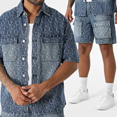 Conjunto Camisa Jean Mangas Cortas Y Short Cargo Jean 018 Azul Denim