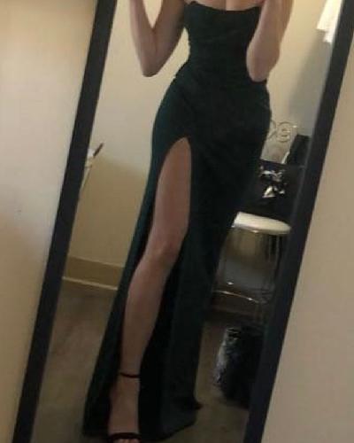 The link won’t work but it’s called “Kaia strapless high slit formal dress” on Windsor store