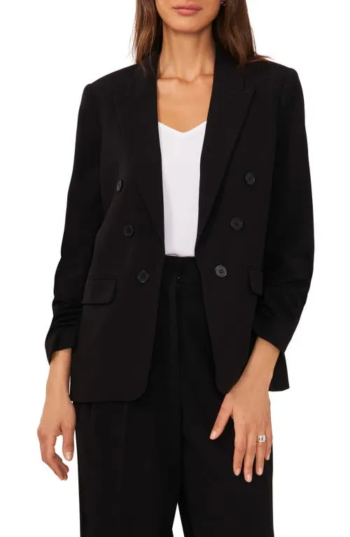 halogen(r) Scrunch Sleeve Double Breasted Blazer in Rich Black at Nordstrom, Size Xx-Large