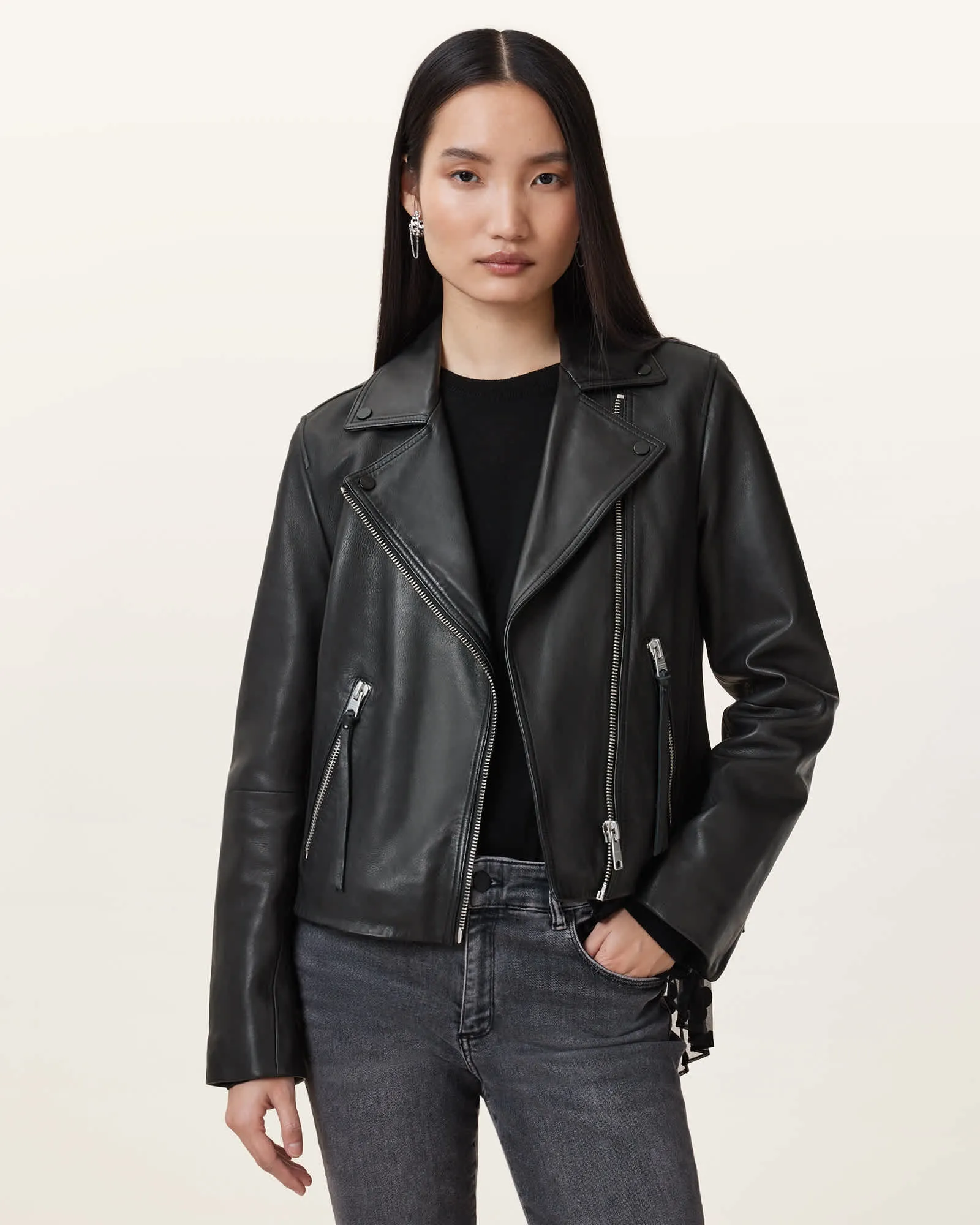 AllSaints Dalby Slim Fit Leather Biker Jacket,, Black, Size: UK 8/US 4