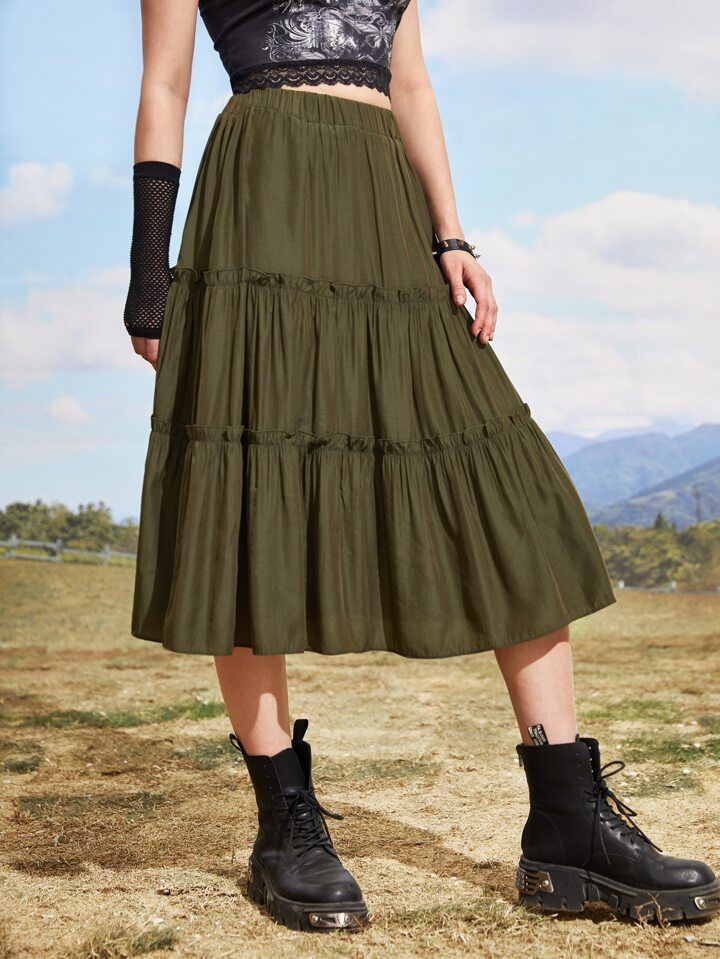 ROMWE Solid Layered Skirt