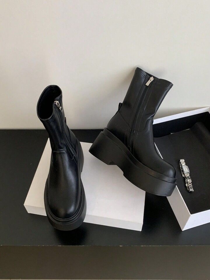 Women's Solid Color Simple Style Wedge Heel Platform Boots
