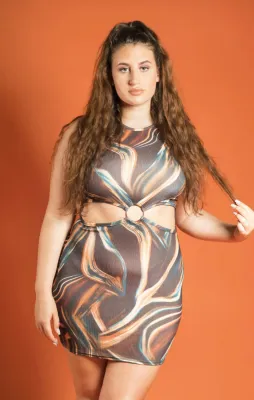 Chocolate Ribbed Marble Print Cut Out Detail Mini Dress - Amarisse