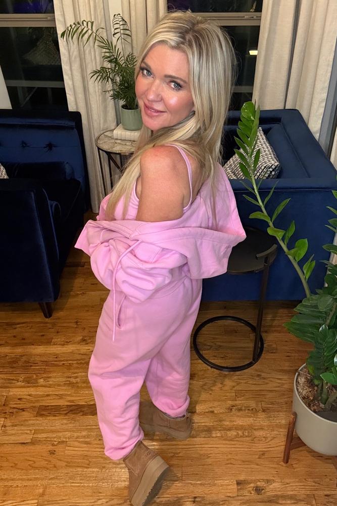 Obsessed with these wide-leg Cozy Sweatfleece pants. The waistband is supportive and flattering, the fabric is insanely soft, and the fit is that perfect balance of relaxed and polished. Great for travel, lounging, or styled with a blazer and sneakers. The pink is such a pretty pop of color. True to size