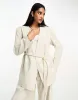 ASOS DESIGN wrap suit blazer with rope belt in natural-Neutral