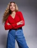 River island cropped v neck cardigan in red