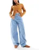 ASOS DESIGN high waisted barrel jeans in light wash-Blue