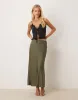 Vila satin maxi skirt in olive green