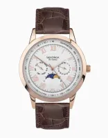 Sekonda Armstrong 40mm Moon Phase Mens Watch Rose Gold Alloy Case & Brown Leather Strap with Silver Dial