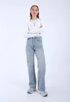 Washed look, wide leg. Fit a bit loose. Great quality.