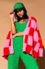 Love You Oversized Checkerboard Cardigan in Red + Pink