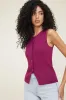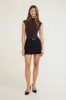 Love this! Velvet material, very flattering, I would love if they made this also in a longer version to wear with low waisted jeans.