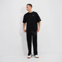Has an embroidered logo. Boxy type of tee. Fits as expected.