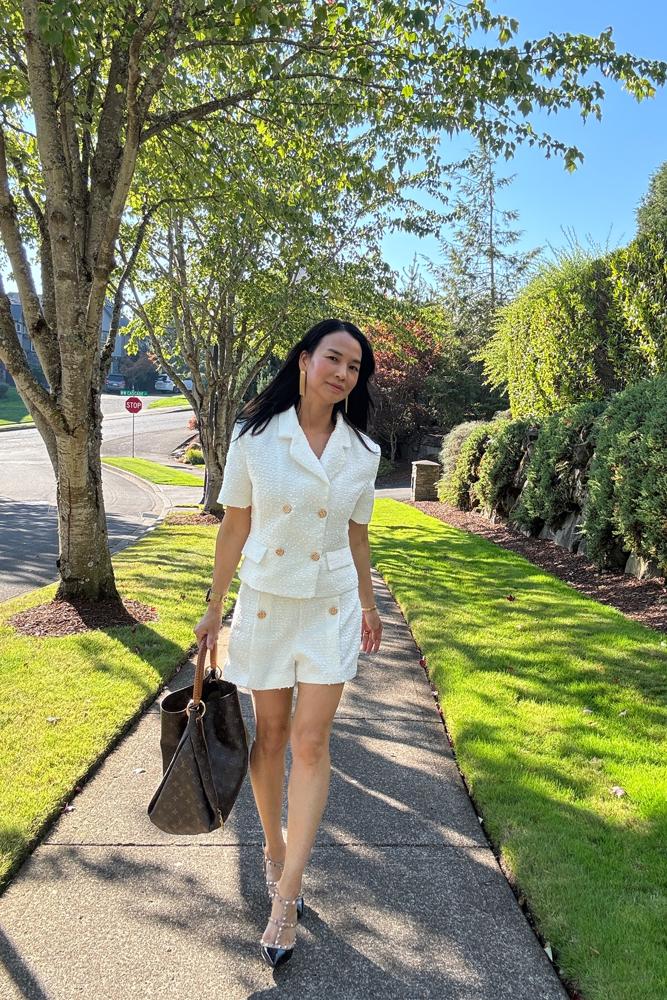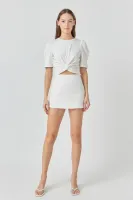Solid white. Not off white. I wore this with a navy blue and white skirt along with navy blue heels