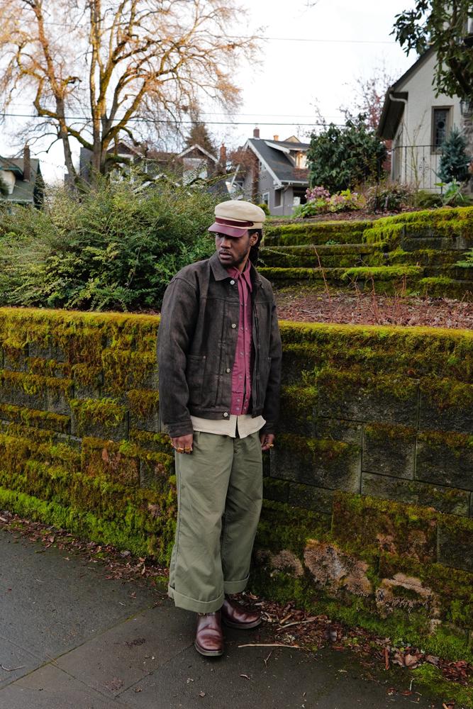 Lightweight type 1 trucker jacket in a black-on-white twill. Cool as hell.