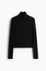 H & M - Ribbed polo-neck top - Black