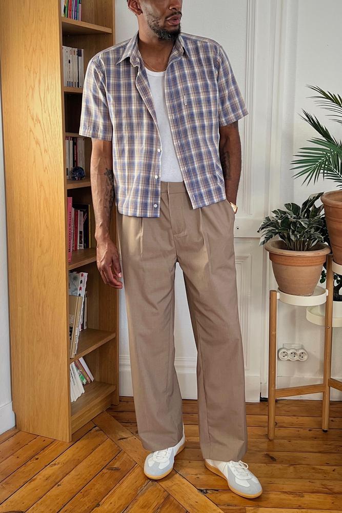 Linen cotton mix. I wear them a lot