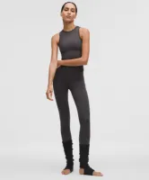 I’ve linked a similar pair of leg warmers. The ones I’m wearing are the Lululemon Women’s ribbed knit merino wool-blend leg warmers in color Heathers Bone.