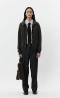 Features a nice crop and elongated sleeves. If sleeves are too long, they are easily fixed at the tailor. I sized up from my usual true to size (wearing S here).