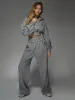 Fluffy Cable Knit Lapel Collar Long Sleeves Shirt With Wide Leg Pants Two Piece Sweater Co Ord Set
